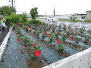 花いっぱい事業では、日進駅北ロータリーの大型プランターや道路横の花壇を中心に、春から秋はハイビスカス、秋から春はパンジーの苗を植栽いたしました。地域一体となって一年間、活動できたことを大変嬉しく思っております。