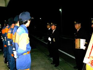 折戸消防団が「年末夜警出発式」を実施 市消防団長及び市長が慰問