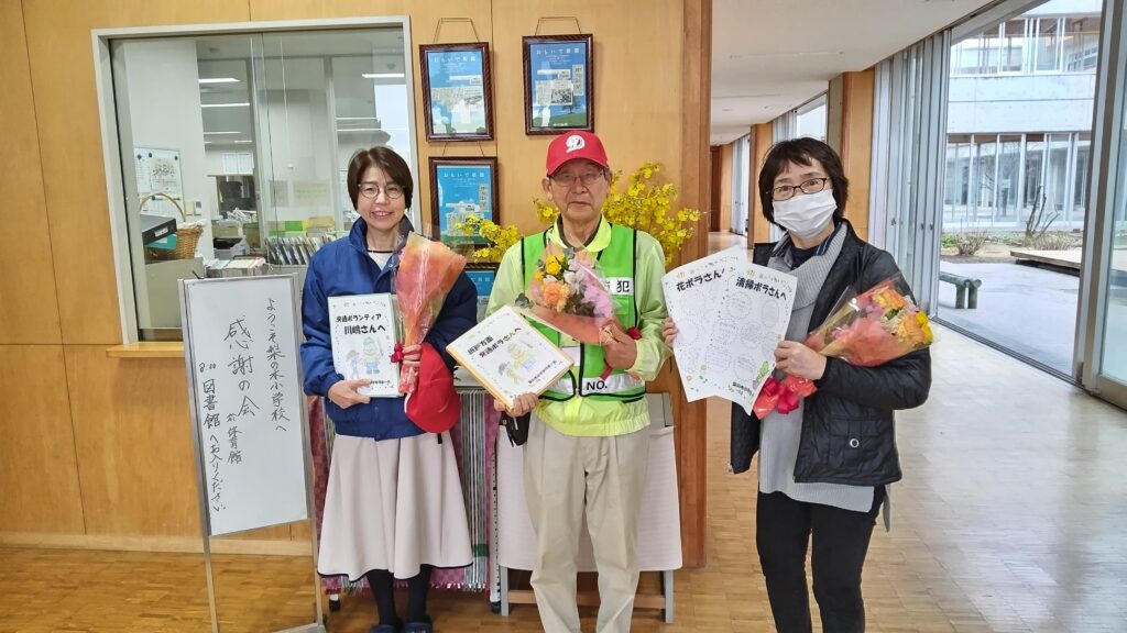 児童代表の皆さんからは、それぞれの活動に対する感謝の言葉が贈られ、色鮮やかな花束と感謝の気持ちが書かれたファイルが手渡されました。